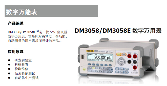 5? 位雙顯數(shù)字萬用表;高精度、多功能、 自動測量;高達(dá)123 rdgs/s的測量速度;真有效值交流電壓和交流電流測量;可存儲和調(diào)用10組預(yù)存配置;預(yù)設(shè)10種標(biāo)準(zhǔn)傳感器配置,內(nèi)置熱電偶冷端補(bǔ)償;簡單、方便、靈活的UltraSensor任意傳感器測量控制軟件;標(biāo)準(zhǔn)配置接口: USB Device,USB Host,LAN(ttDM3058),RS-232,GPIB(? DM3058);支持遠(yuǎn)程命令控制。
