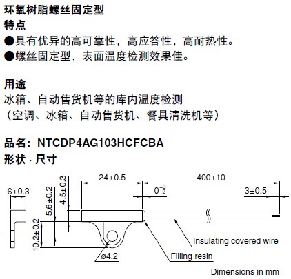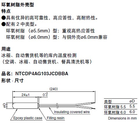 用于冰箱、自動售貨機等的庫內溫度檢測;
