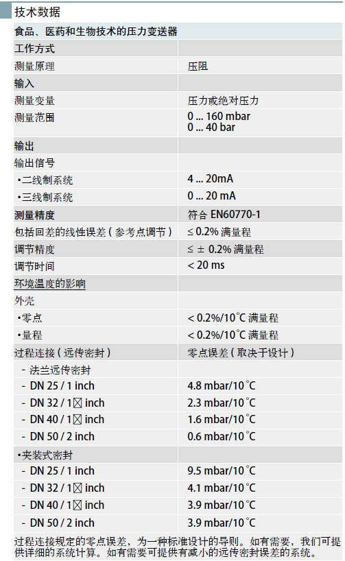 緊湊型設計; 高質量的材料使用符合衛生標準; 壓敏電阻式測量系統; 耐真空和防過載; 接液部分用不銹鋼制成; 完全焊接; 易清潔; 專門為滿足食品、醫藥和生物技術.