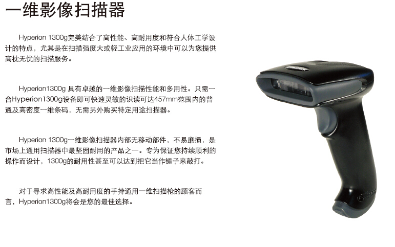 Hyperion 1300g完美結合了高性能、高耐用度和符合人體工學設計的特點,尤其是在掃描強度大或輕工業(yè)應用的環(huán)境中可以為您提供高枕無憂的掃描服務