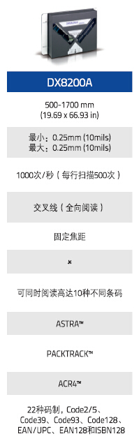 ACR?-4條碼重組技術,用于多激光管電子聚焦系統的ASTRA技術,PACKTRACK?功能用于盡量減小物體之間的間隔并提升系統的生產效率.內置以太網TCP/IP連接功能,通過Datalogic WebSentinel?進行遠程診斷監控.