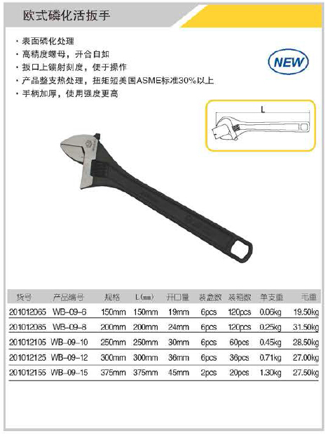 表面磷化處理,高精度螺母,開合自如,扳口上鐳射刻度,便于操作.產品整支熱處理,扭矩短美國ASME標準30%以上,手柄加厚,使用強度更高.