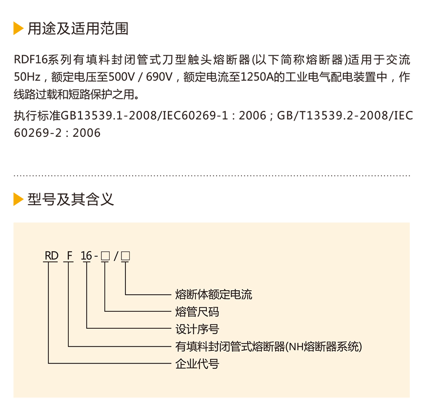 有填料封閉式刀型觸頭熔斷器RDF16系列