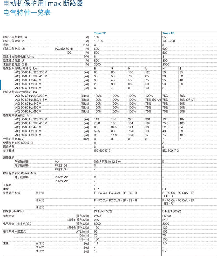 • Tmax電動機(jī)保護(hù)用塑殼斷路器