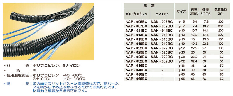 • NAP系列 廣泛被應用于汽車配線用,可保護電線電纜不受外力磨損及絕緣.