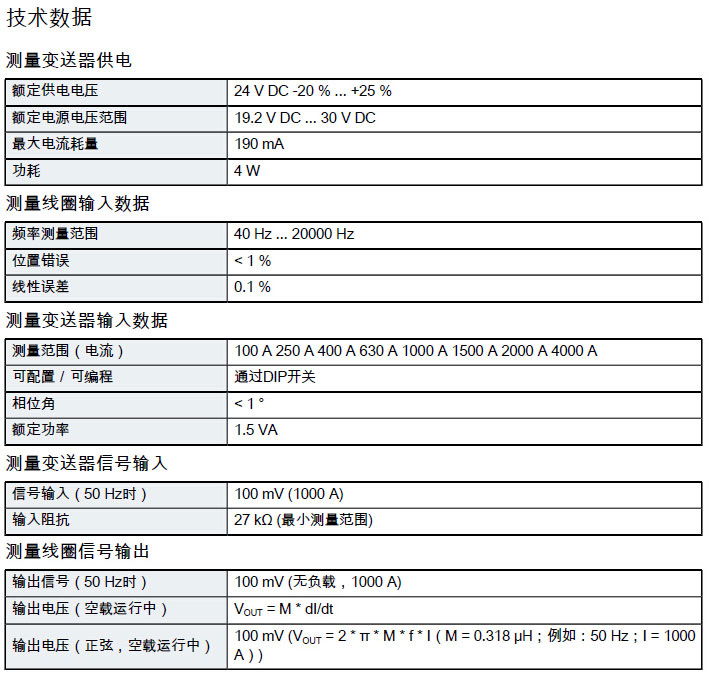 套件包括2個組成部分:A測量變送器和一個羅氏線圈,長度為450mm;安裝好后的測量線圈直徑為140 mm.羅氏線圈用于匯流條和電源線纜的AC電流測量.