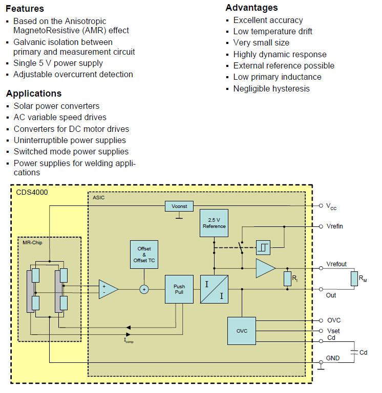 優(yōu)勢(shì):優(yōu)良的精度、低溫度漂移、尺寸非常小、高動(dòng)態(tài)響應(yīng)、外部參考可能、低初級(jí)電感、忽略磁滯.